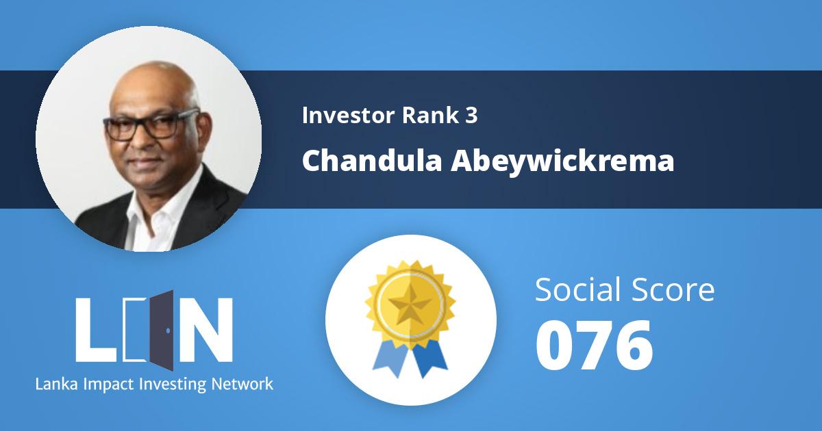 Chandula Abeywickrema is the Founder and Chairman of the Lanka Impact Investing Network (Private) Ltd (LIIN) which Sri Lanka's first ever impact investment fund. LIIN focuses on investing in existing and and emerging social enterprises and promoting entrepreneurship across the country . An accomplished and much respected senior commercial banker with lead expertise and experience in retail and development banking with proven track record of over 30 years, Chandula is also recognized inAsia as an expert in financial inclusion. Chandula spear headed the retail and development banking strategy as the deputy general manger of Hatton National Bank (HNB), and the strategic direction of HNB’s SME portfolio and Microfinance portfolio came under his direct accountability. Under his leadership, the bank was awarded the "Best Retail Bank" award from Asian Money for 7 consecutively years until 2013 when he retired from the bank after 25 years of service . He has also served as the Managing Director /CEO of CCC SOLUTIONS , the project management arm of Ceylon Chamber of Commerce from 2014 to 2015 and as the Consultant Strategy and Marketing for National Savings Bank (NSB) from 2016 to 2017. Chandula is the current Chairman of the Banking With the poor Network (BWTP) , Asia’s Largest Micro Finance Network and was also appointed recently by the Asian Bankers Association (ABA) as the Advisor on Financial Inclusion to ABA. He serves on a the number of boards of both local and international financial institutions . He is also the Chairman of CSR SRI LANKA the national Apex body for corporate social responsibility representing the largest number of private sector corporates.